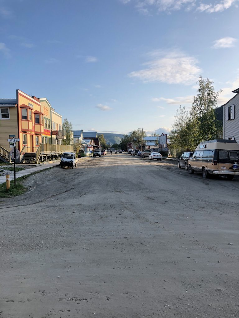 Prior to leaving I had looked at room availability in Dawson City and come up empty. This was a bit concerning, since there’s no other options up there and you’re hours away from anyplace. I called Melissa and she was kind enough to poke around for me while we finished up packing and gassing up. I also reached out to Kim (who knew that we weren’t fully equipped for camping), and she volunteered to share a campsite and trade my one-man tent for her three-man for the night if need be. Not ideal, but nice to know that we’d at least have some sort of option for the night in an emergency. Just as we were done gassing up, though, Mel called to report that she’d booked us a room on AirBnB. Sweet! We were off and running, secure in our lodging situation.