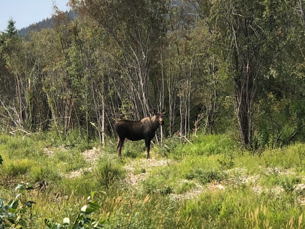 But then…Moose Attack! Well, actually it was browsing the growth at the edge of the forest on the side of the road. We stopped and took a picture, high-fiving each other for finally sneaking up on an unsuspecting moose.
