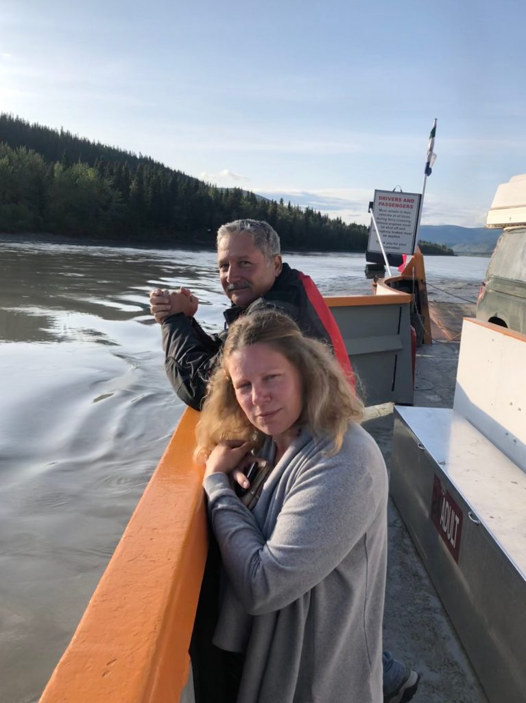 It started to rain just outside of Dawson, followed by strong winds. We rolled into the City in pretty heavy rain and Mel called to say that she’d got us a room at the Dawson City River Hostel, but we needed to get there ASAP. So we kept rolling through town to the (free, 24 hour) ferry at the end of the main street. A few minutes later our bikes were tucked in to an unused area on the car ferry and we were cruising across to the far side of the Klondike. Off the ferry and the hostel was right in front of us.