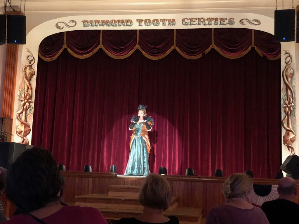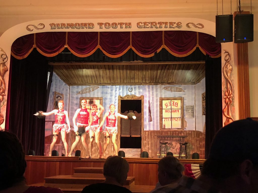 From there we went to Diamond Gertie’s Saloon and Casino. Paul was insistent on seeing the can-can show, and I must admit that it was pretty spectacular. We got a late dinner, which was tasty, and Paul gambled a bit. By then it was midnight, and well past time to call it a night. So we walked home in the midnight twilight, but on our cold weather layer, slid into sleeping bags and crashed out.