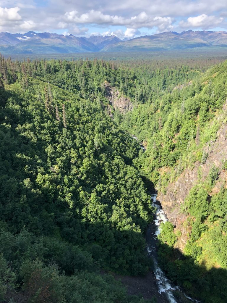 We cruised down the road past Denali, stopping in the park for a couple of housekeeping items. First, we needed to take pictures with the signs (which were posted in this blog as if I had taken them on the day before because I am a liar). That done, we also wanted to check out the Denali train station. I expected it to be a bit cooler than it actually is, but maybe I’m just a bit jaded on actual log construction at this point. On the other hand, two independent train station employees scoffed at our plan to go to Homer and instead steered us towards Seward (which is also on the Kenai Peninsula southish of Anchorage. A quick look at the map app told us that Seward was a 2hr trip vs. the 5hr drive to Homer. Sold! Seward was now our ultimate trip destination.