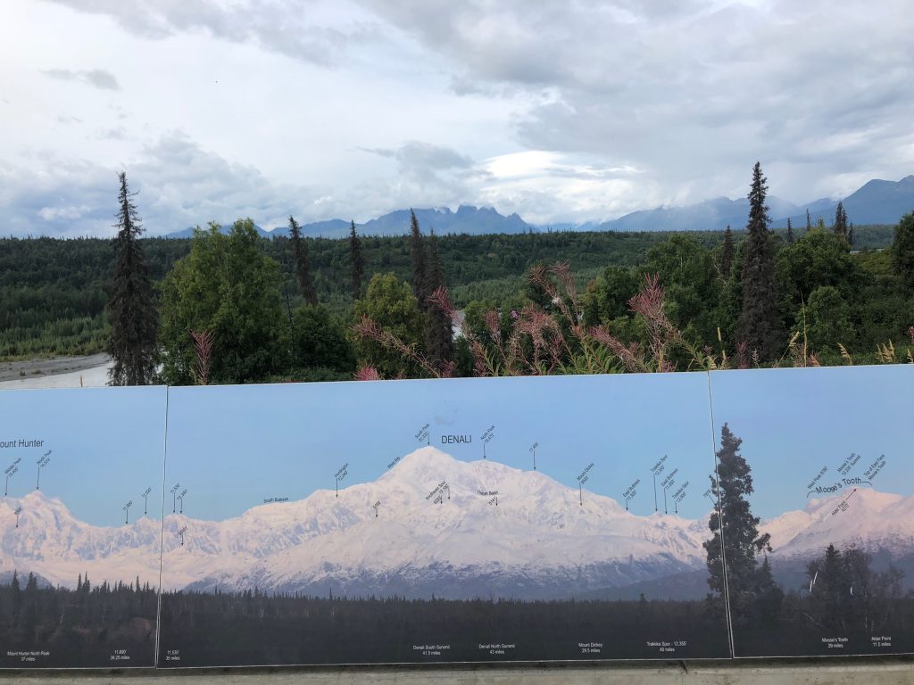 Take my word for it, we both saw Mt. McKinley-Denali’s snowy reaches at a great distance. And frankly, we weren’t even looking. We thought that we’d be well south of the mountain based on the accessible parts of the national park. Nope!