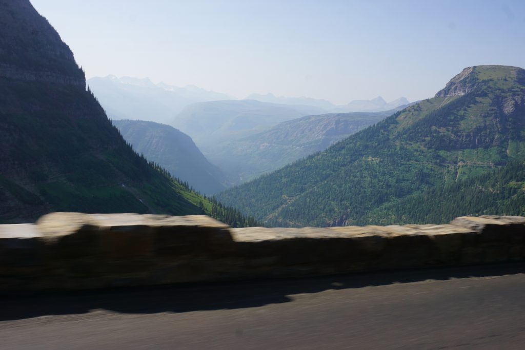Up into Glacier we went, finally on the Going to the Sun Road. And sister, it was spectacular. Keep in mind that we just did Yellowstone the day before, and the views in Glacier were every bit as amazing. Virtually every turn heading up to the summit made us want to stop to take a picture or just take in the view. Interestingly, Paul called a hasty halt when he realized that the view in front of us was the same as in a painting that had hung in his parents’ house since their marriage. No one knew what the painting was of, but it was a family touchstone. Turns out, it was this particular vista from Glacier N.P. Many pictures were taken. (Spoiler Alert: He was wrong.)