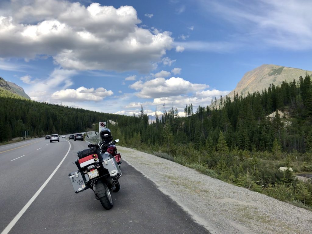 So after Radium we continued riding towards Banff, taking us into the Kootenay National Park. Daaaaaaaamn. Canada, you’ve been holding out on me! All of those miles between the border and KNP just dropped out of my brain as we rode from breathtaking vista to spectacular view to WTF is that all about mountains. It was a great 90 minutes or so into Banff.