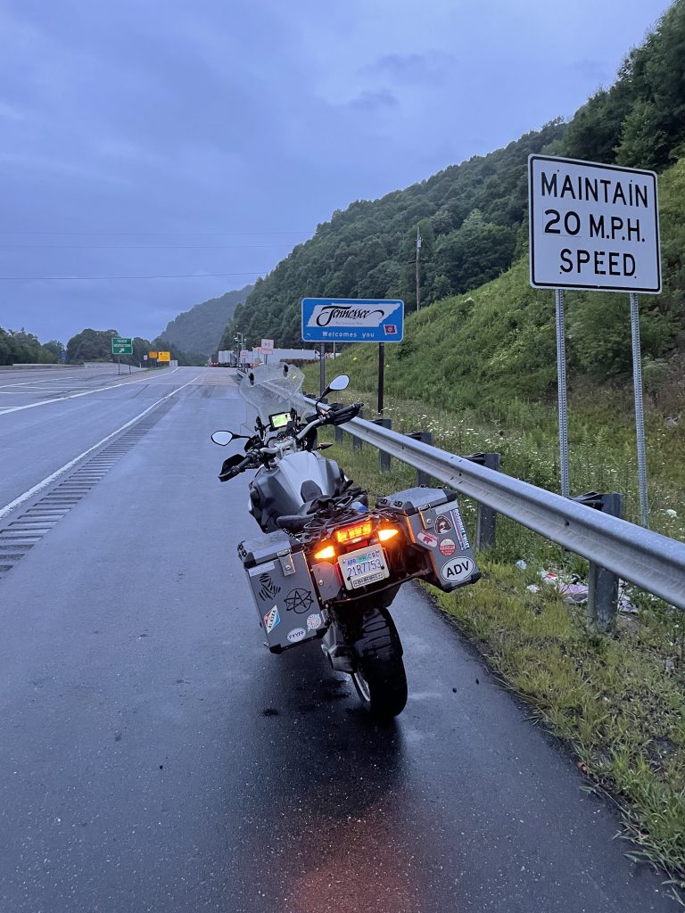 I set off out of Asheville well buttoned up in my gear, braced for the storm. I opted not to layer, which I regretted a bit as the road climbed and then slid into a 40-mile long river valley leading to Kentucky. It got a bit nippy, but never under the mid-to-high 60’s, so my shorts and t-shirt ultimately did the job…barely. The road out of Asheville was damp, but the rain was never more that a drizzle. We climbed a bit then dropped into Tennessee’s Johnson City. It was…a city. But Tennessee was lush and green, although I find the kudzu really ominous. It just seems like it’s devouring the forests where it grows. Unsettling.