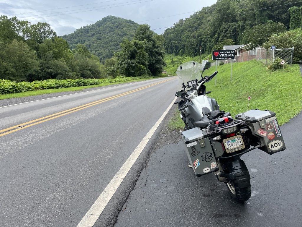Tennessee checked off the list, the road carried me on to Virginia’s very western end. It’s basically a Virginia sandwich between TN and KY. Which enabled me to duck up the aforementioned river valley, which carried me through Virginia coal country up to the Kentucky border. It was…amazing. Great road, interesting communities, amazing geography. It’s almost a fjord with a little river at the bottom and communities and services stretched out on both sides of the river, clinging to the steep rock walls. I could’ve ridden that road forever. It took me through the small town of Grundy, which looked much less like a pill-ridden hellscape than I would’ve expected. I finally made it up to the Kentucky state line and trod a few steps on their soil, before return to the main road. I did notice that the Virginia side seemed to be more prosperous for whatever reason. Even the rundown Virginia homes were houses. Everything on the Kentucky side that I saw was a trailer.
